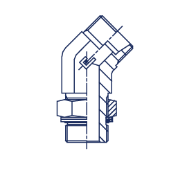 Конструкция данного углового адаптера включает прочный корпус, обеспечивающий надежное и долговечное трубное соединение под углом 45°. Адаптер соответствует стандарту 24° DIN 2353, что гарантирует его совместимость с широким спектром стандартных трубных соединений и конусных фитингов. Это позволяет создавать надежные и герметичные соединения даже в условиях ограниченного пространства.