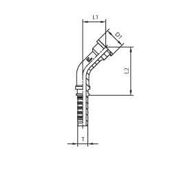 Конструктивно фитинг представляет собой угловой элемент с фланцевым соединением, выполненный в соответствии со стандартом ISO 6162-2 (фланцы SAE J518 Код 62). Угол 45 градусов обеспечивает удобство монтажа и эффективное направление потока. Конструкция предполагает использование уплотнительных колец для формирования высокогерметичного соединения, устойчивого к вибрациям и пульсациям давления. Совместим с соответствующими ответными фланцами и трубными соединениями.