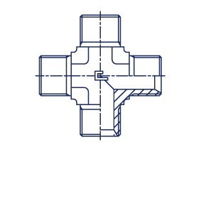 Крестовина гидравлическая BSP 1/2" (Ш). Соединения с уплотнением по конусу 60° (BSP). Крестовина BSP