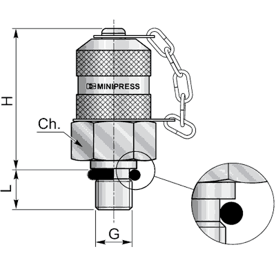 Контрольная точка с наружной метрической резьбой и резиновым уплотнением O-Ring.