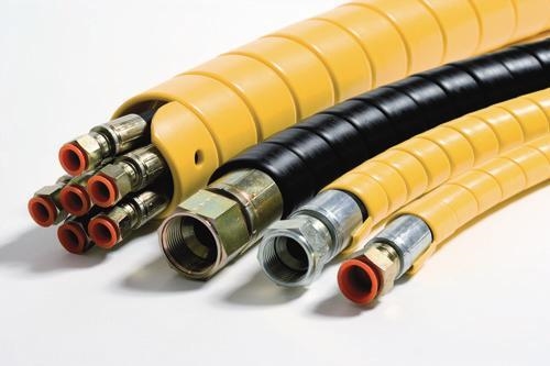 Разработана для защиты гидравлических и пневматических рукавов от трения и ударов, а также делает рукава более заметными на технике. Кроме того, защитная спираль может быть установлена на рукав в любой момент. Изготавливается методом экструзии, благодаря чему улучшаются прочностные характеристики изделия, закругленные края исключают наличие острых режущих кромок.