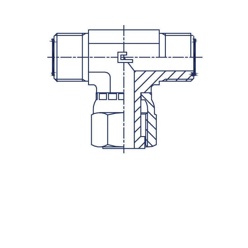 Тройник гидравлический ORFS 32. Соединения с торцевым уплотнением (ORFS). Тройник ORFS с накидной гайкой