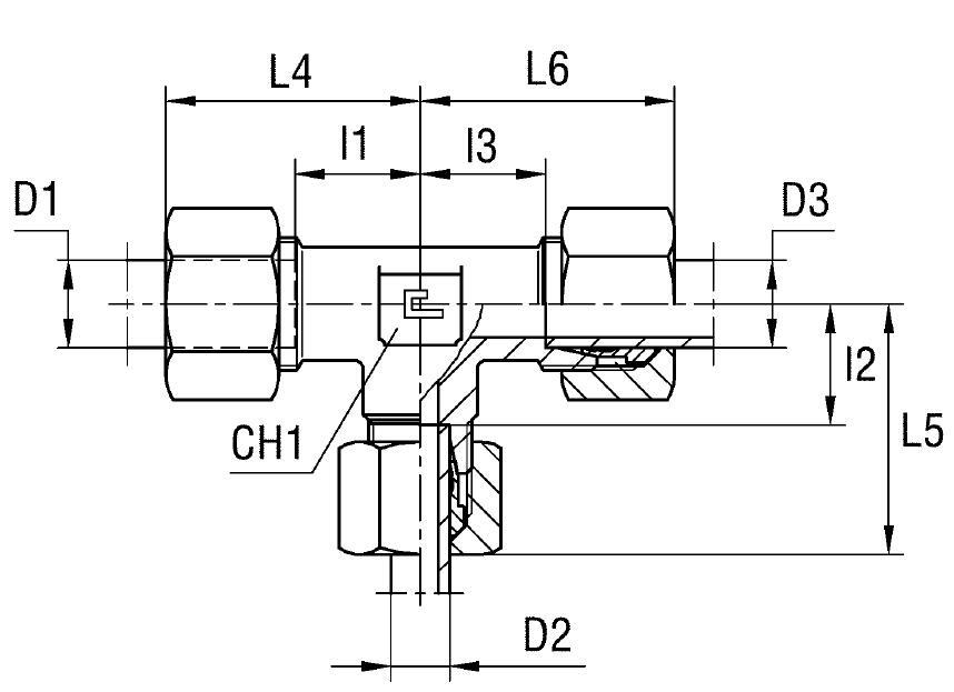 Конструкция данного фитинга обеспечивает высокую надежность **соединения DIN 2353** с уплотнением по 24° конусу. Тройник поставляется "в сборе", что означает его готовность к монтажу, включая необходимые гайки и врезные кольца. Это обеспечивает простоту и скорость установки, гарантируя герметичность и устойчивость к вибрационным нагрузкам, характерным для гидравлических систем с 24-градусной конусностью.