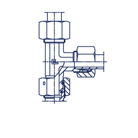 Конструктивно изделие представляет собой надежный угловой адаптер в сборе, обеспечивающий оптимальное изменение направления потока на 90 градусов. Соединение выполнено по принципу 24° конуса, что соответствует требованиям международного стандарта DIN 2353 / ISO 8434-1. Это гарантирует высокую виброустойчивость, надежную фиксацию и герметичность при использовании стандартных обжимных колец (DL) и накидных гаек, входящих в комплект поставки.
